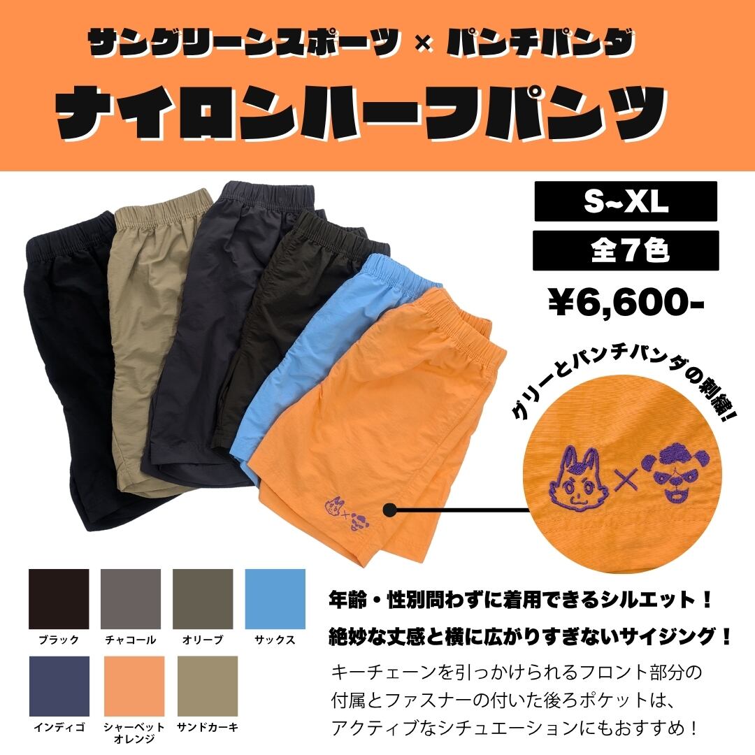 サングリーンスポーツとパンチパンダがコラボレーション!快適な着心地を実現した、ナイロンハーフパンツです。